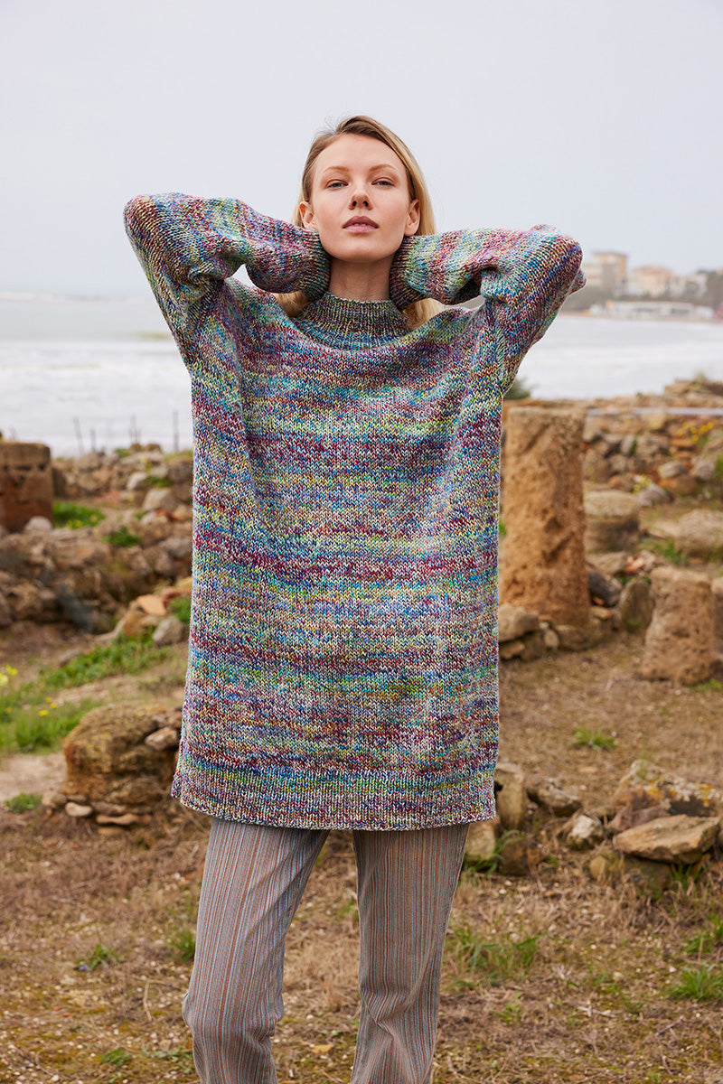 PRISMA vereint vier Farbverläufe in einem lebendigen Mouliné-Garn aus 100 % Merinowolle. Die Farben spielen miteinander und sorgen für Dynamik und Tiefe im Maschenbild. Die lebendige Farbwirkung von PRISMA steht im Kontrast zu MERINO+, das bei gleicher Stärke eine klassische Alternative für dieselben Modelle bietet.